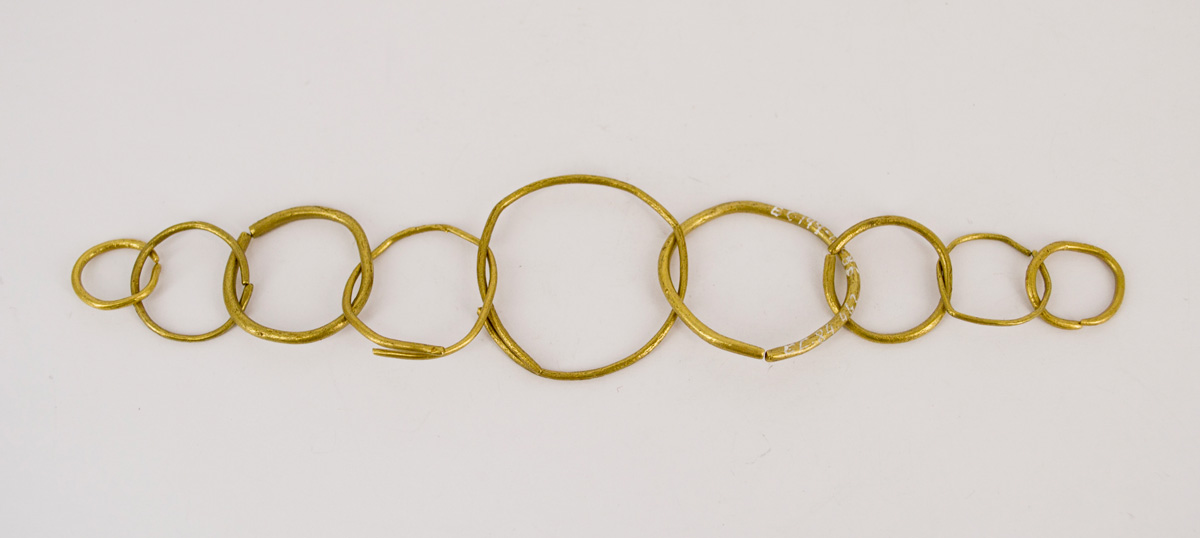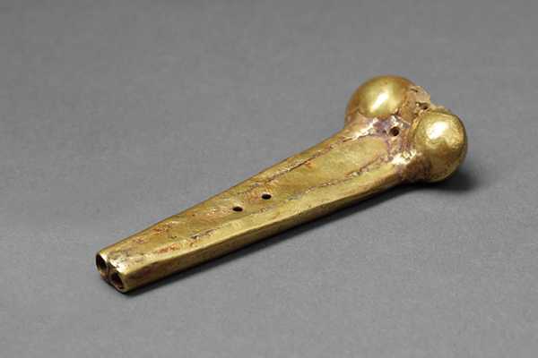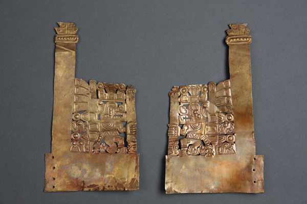 AAU-4383 Adornos con personaje en perfil con cabeza de felino, alado, cinturón de serpiente y báculo en la mano