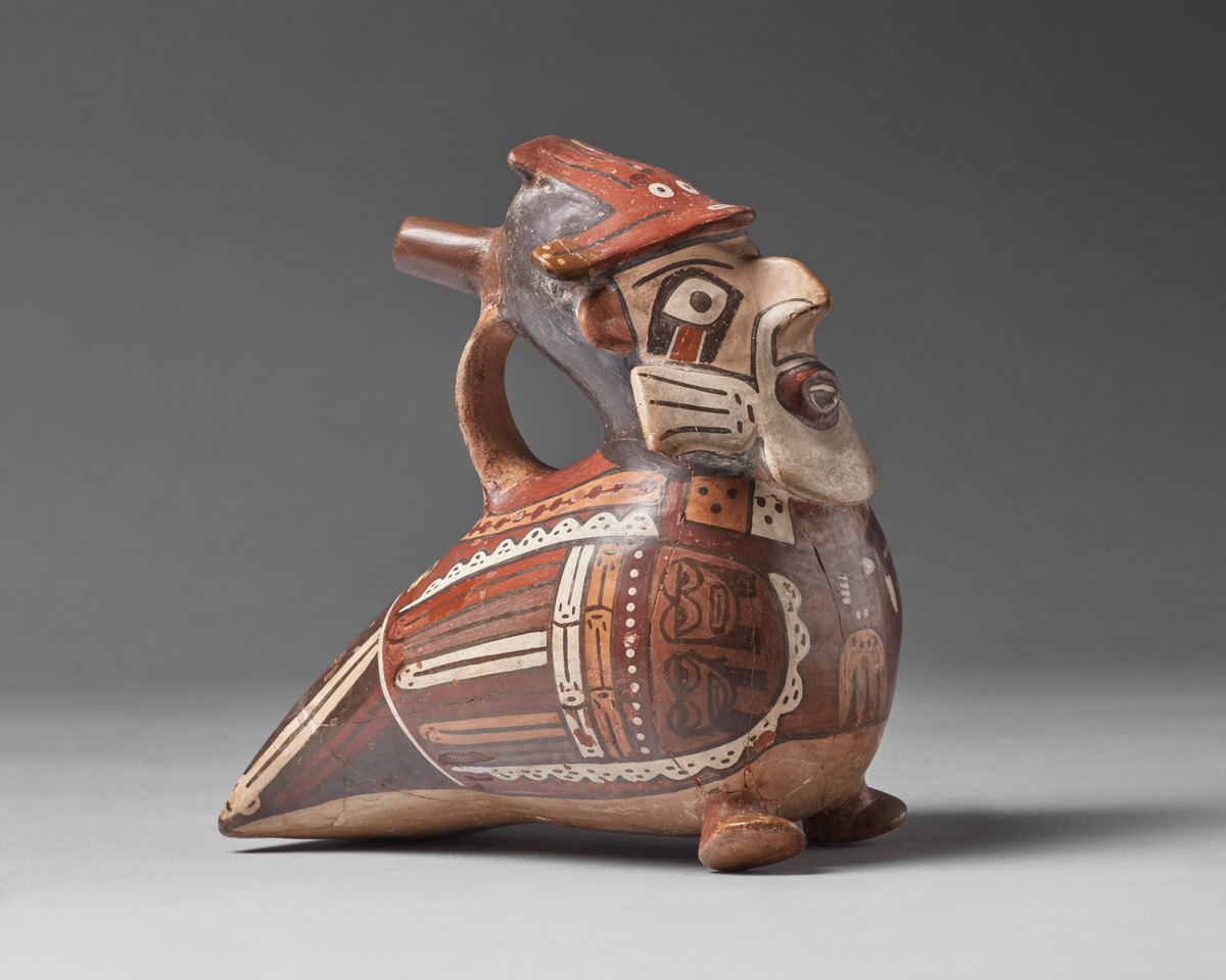 La representación plasmada en esta cerámica es testimonio de que los Nasca consideraban la existencia de personajes que tenían la capacidad de volar. Por los diferentes atributos que presenta el personaje representado a lo largo de la superficie del ceramio, lo podemos definir como un ser sobrenatural.